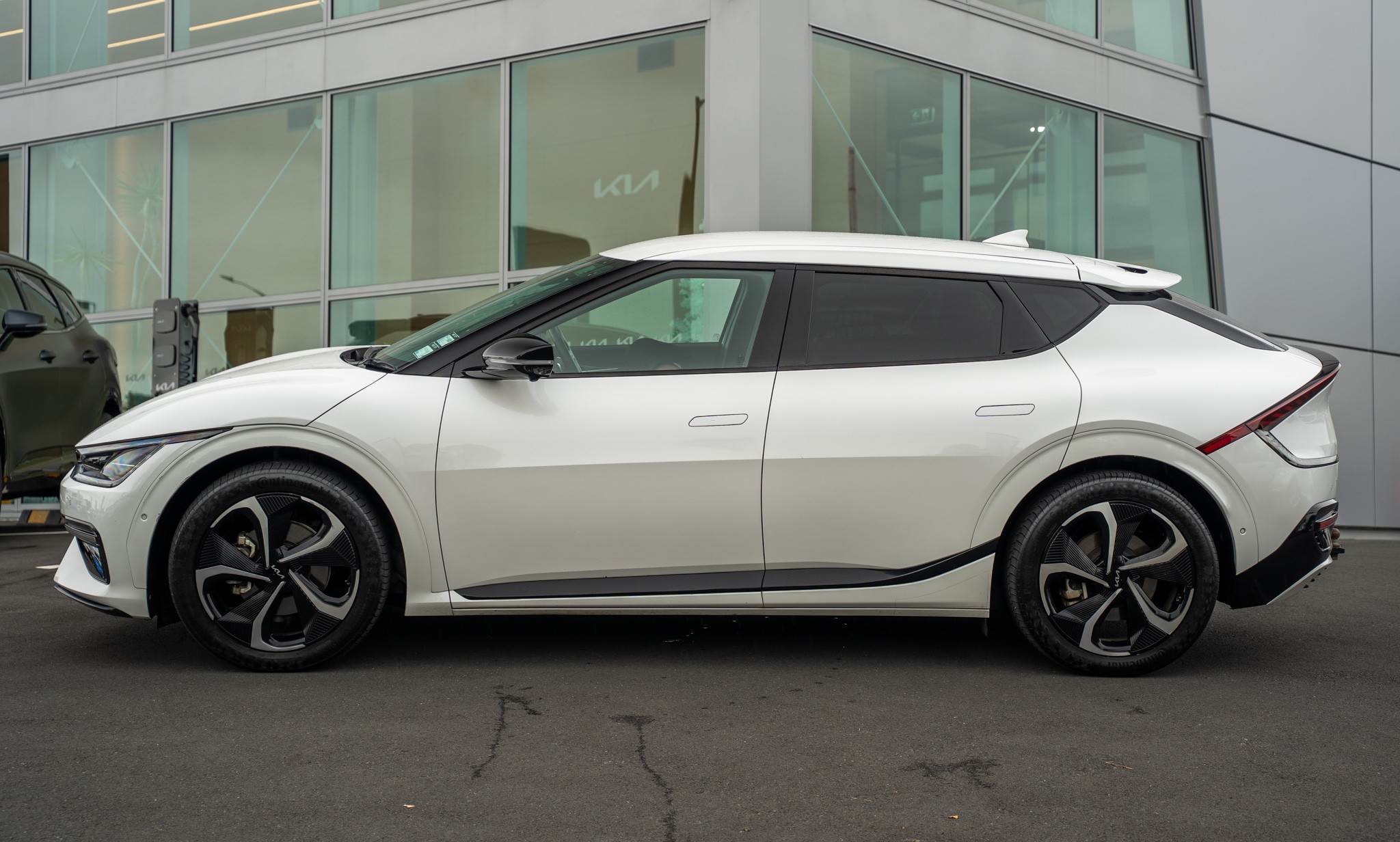Key Features: * All-Electric Power: The Kia EV6 GT-Line is powered entirely by electricity, offering zero-emission driving for a sustainable and eco-friendly journey. * High-Performance Capability: With cutting-edge electric technology, the EV6 GT-Line delivers impressive acceleration and a smooth driving experience. * Sleek and Modern Design: The EV6 boasts a modern exterior design with aerodynamic lines, creating a stylish and futuristic presence on the road. * Advanced Technology: Enjoy a suite of advanced features, including a state-of-the-art infotainment system, connectivity options, and innovative safety technologies.